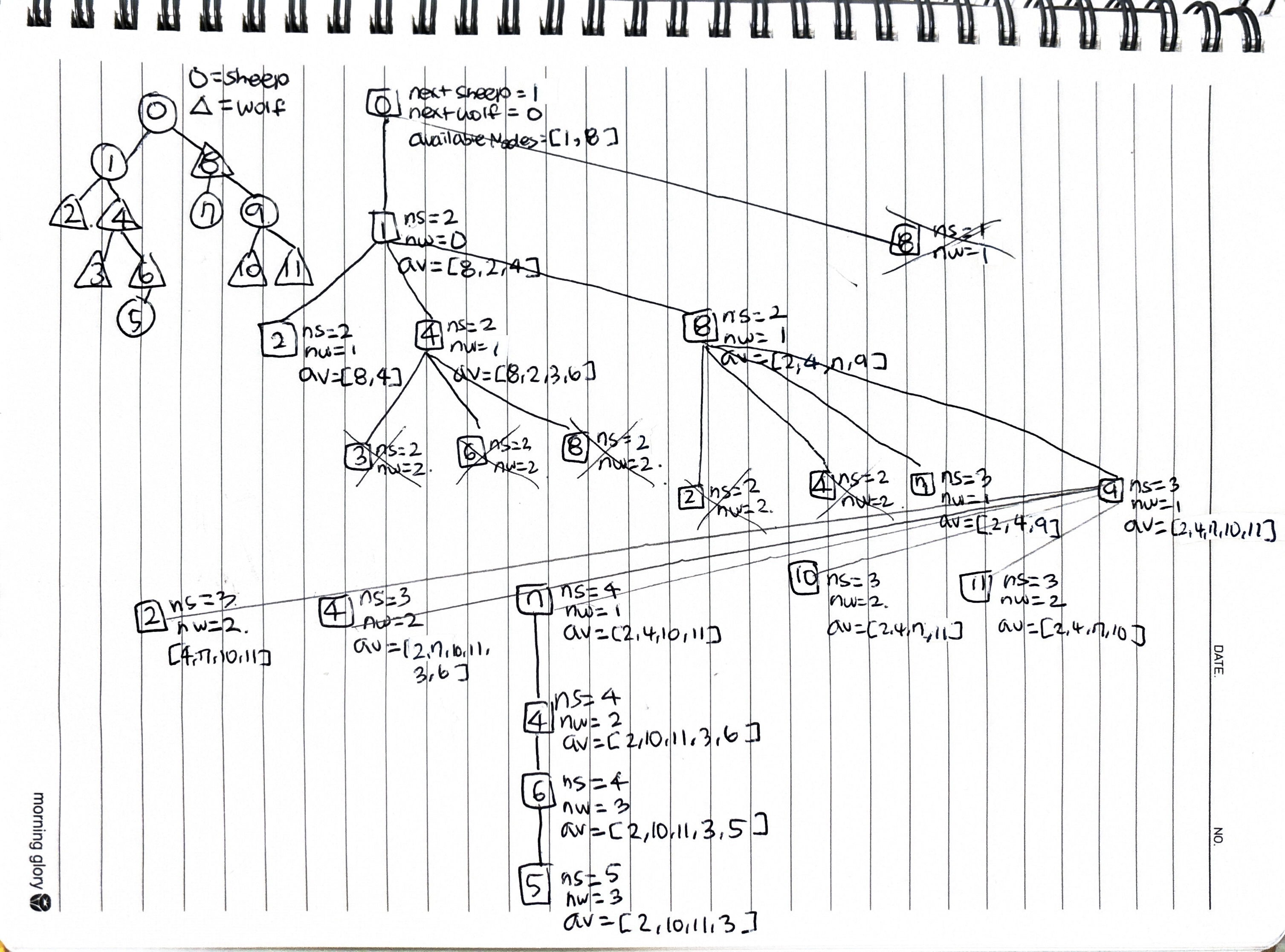 각 노드를 방문하는 경로에 따라 양과 늑대의 수가 계속 달라지기 때문에, 모든 방문 순서를 고려하여 양의 수가 늑대의 수보다 적지 않도록 해야 한다.