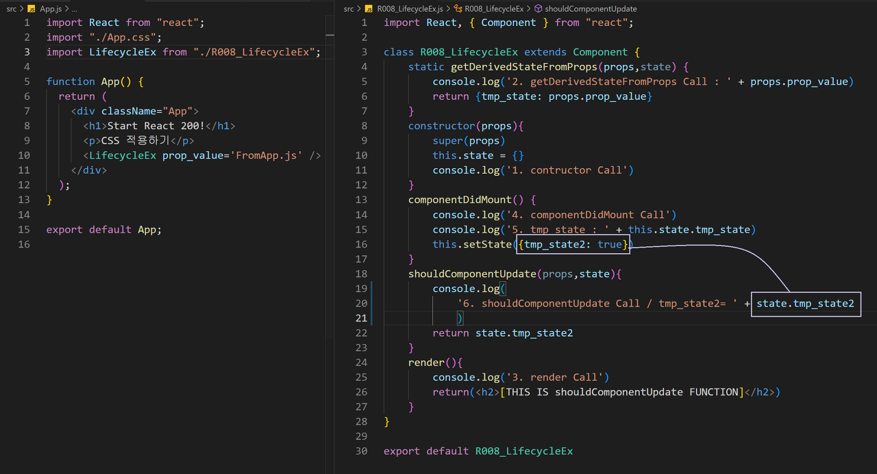 - return 값이 true면 render( ) 함수를 한 번 더 호출함